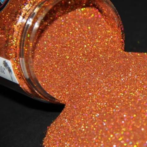 Orange holographic metal flake.