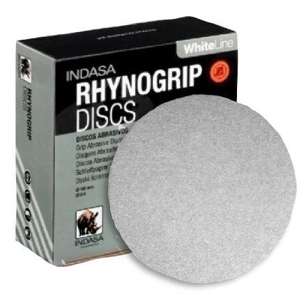 Discos de lijado con gancho y bucle Rhynogrip blancos de 6" Indasa