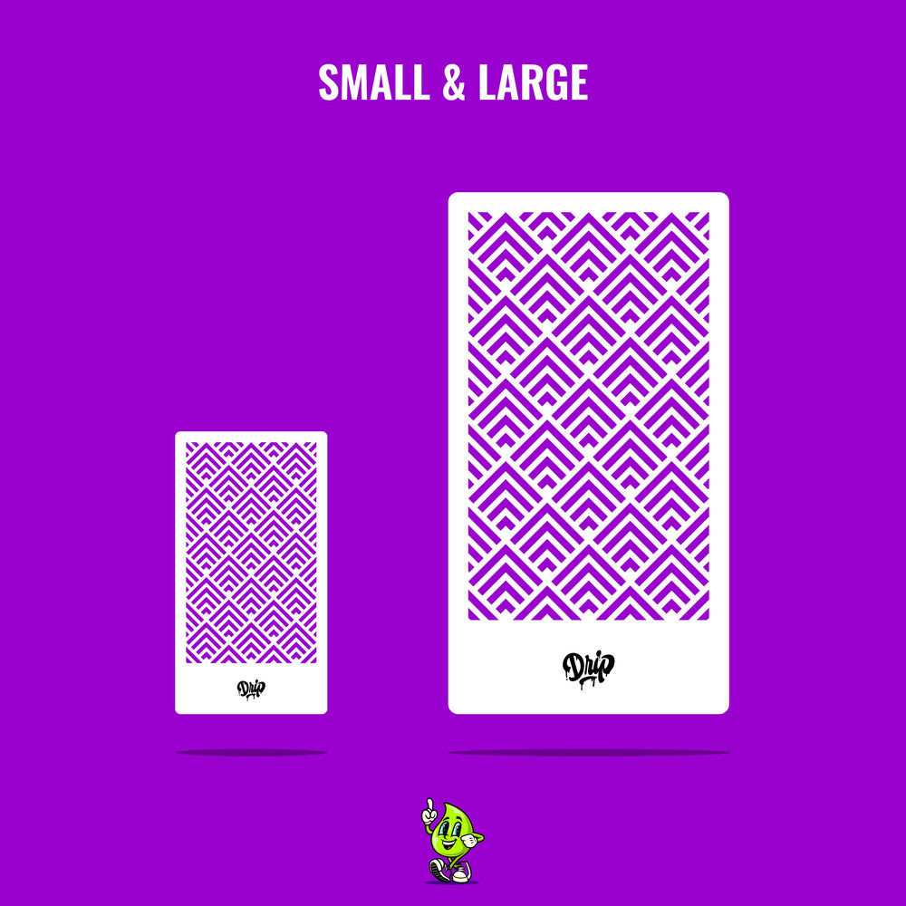 We also offer custom stencil designs in larger sizes! Email us at dripart.corp@gmail.com, and we’ll make it happen. A flat setup fee may apply for custom stencil designs.